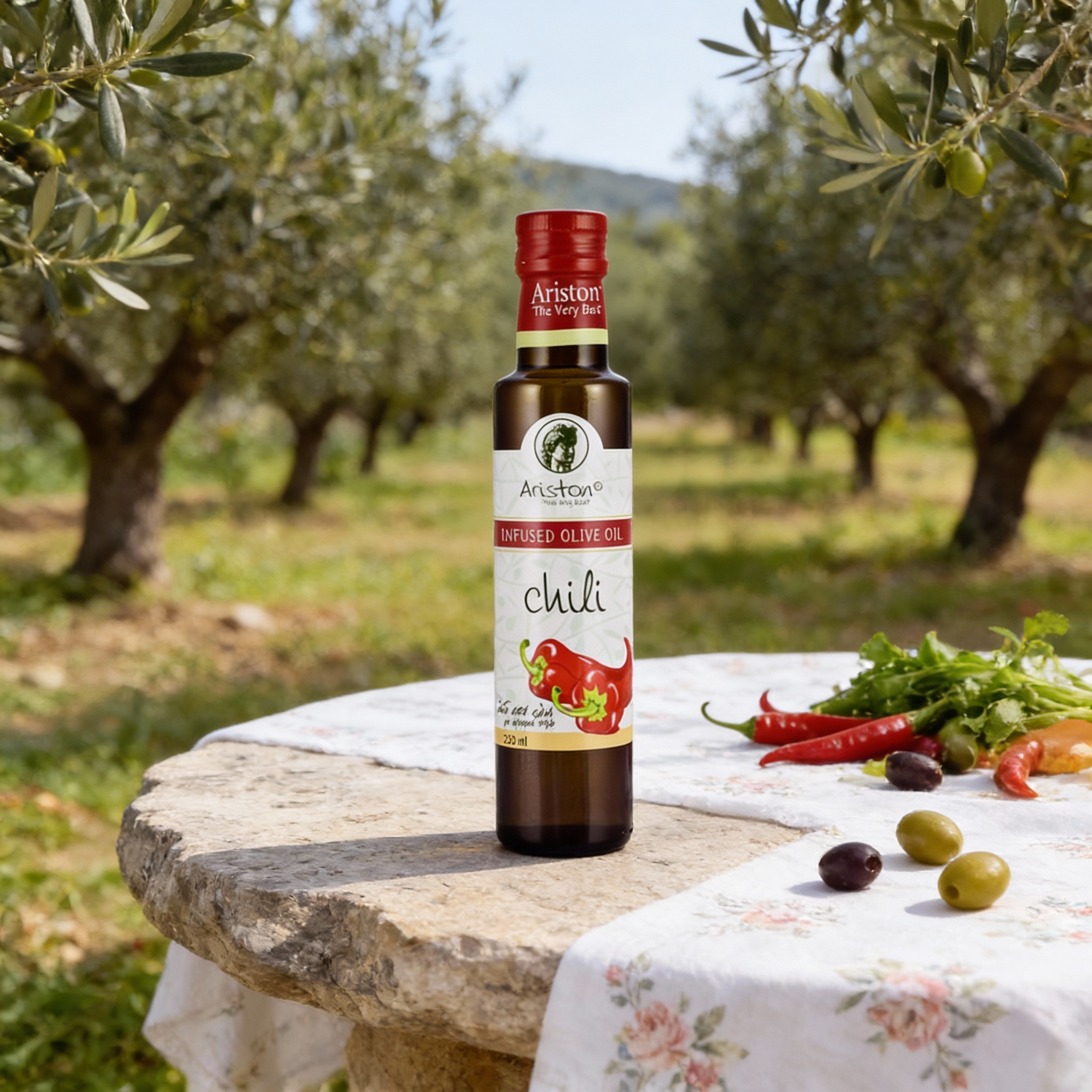 1. Ulei de Măsline Extravirgin cu Infuzie de Chilli oferă un gust intens și ușor picant.